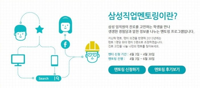 6월 말까지 약 3달간 진행되는 2013 삼성직업멘토링 상반기는 지난 4월 30일까지가 신청기간이었는데요.