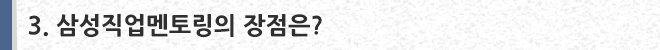 삼성에는 다양한 직무분야가 있습니다. 각각의 분야에서 현재 일하고 있는 삼성직원과 앞으로의 진로에 대해서 고민하고 있는 대학생들이 만나 고민을 나누고 조언을 해주는 멘토링을 진행하는 것입니다.