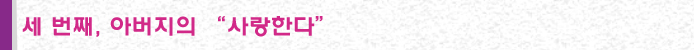 그의 아버지가 일흔이 넘으시고 나서부터, 그와 아버지는 조금씩 통화를 하게 되었습니다. 아버지는 통화할 때마다 항상 “밥 먹고, 차 조심하고, 전화세 많이 나온다 끊자.”라는 같은 말만 반복하셨습니다. 건강이 안 좋아 입원하게 된 어느 날, 갑자기 아버지의 목소리가 듣고 싶어서 아버지께 전화했습니다. 그날도 아버지는 늘 하시던 대로 “밥 먹고, 차 조심하고, 전화세 많이 나온다 끊자.”라고 하셨습니다. 그런데 이상하게도 그 말이 “사랑한다. 바쁘겠지만 시간 나면 집에 한번 들려라.”라고 해석되어 들렸습니다. 그렇게 그는 아버지의 무뚝뚝한 말이 아버지의 사랑 표현이라는 것을 알게 되었습니다.